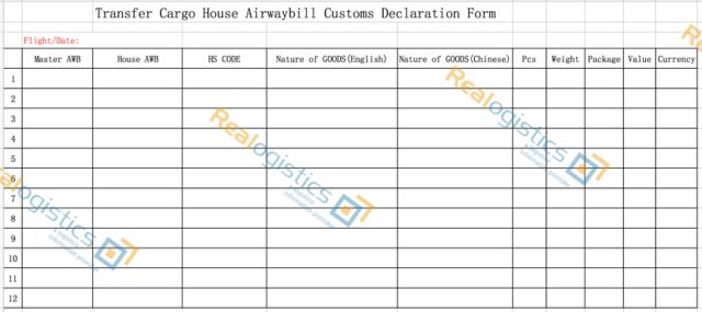 “中国南方航空公司CZ” 转关货物海关申报表格